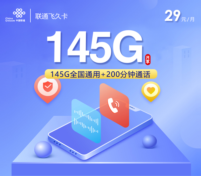 29元/月享145G全国流量+200分钟